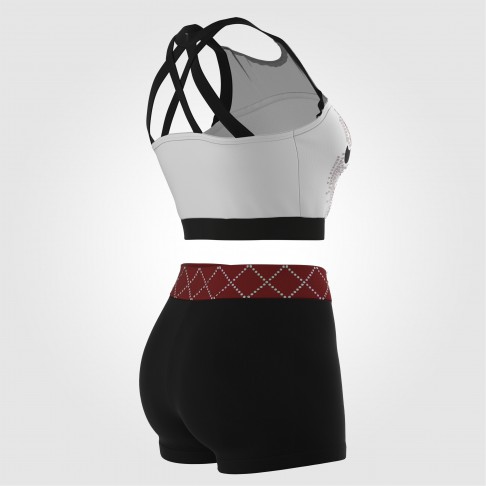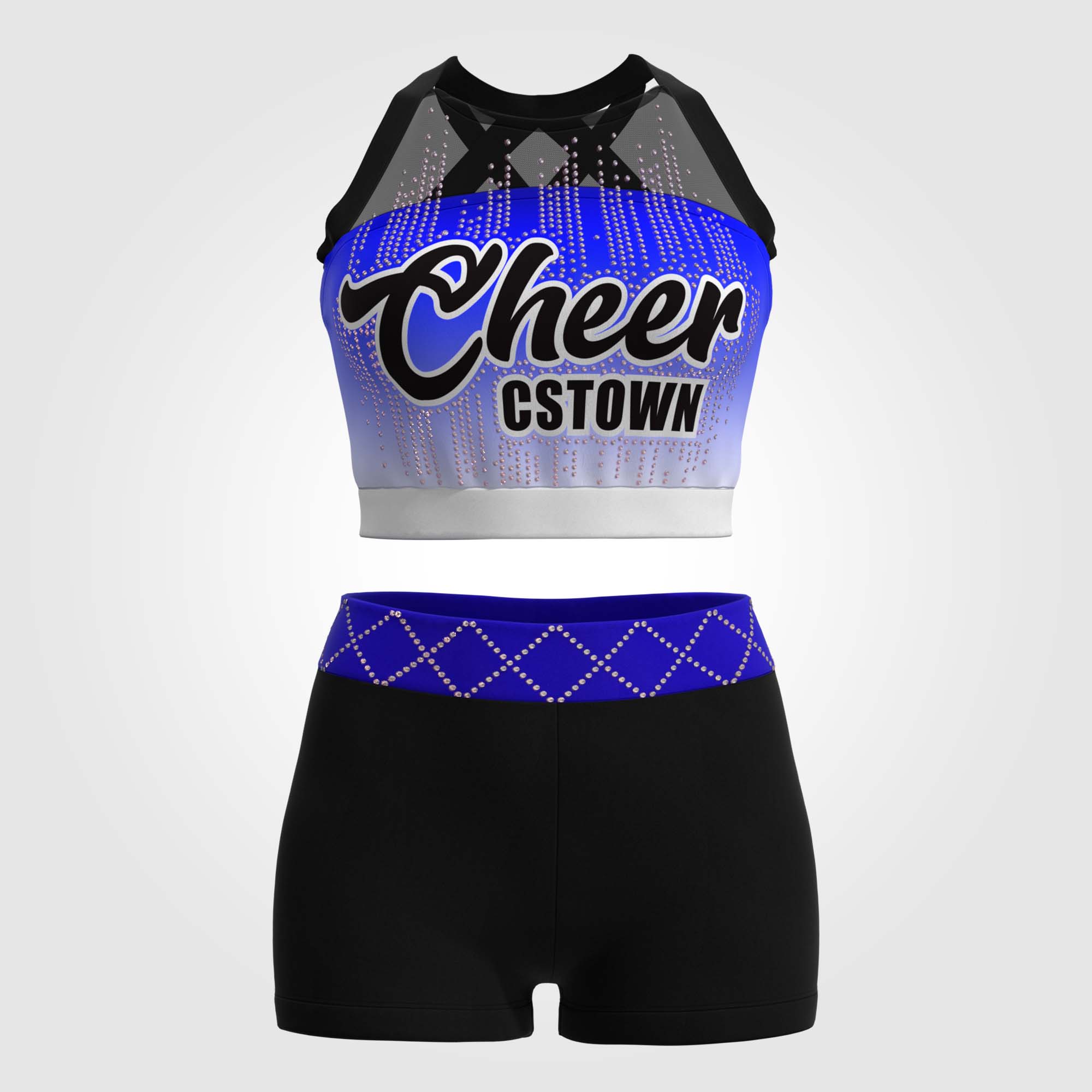 自然をテーマにした、キラキラした星のチアユニフォームデザインは、輝く海からインスパイアを受けています。海と空の間のブルーとホワイトの色がトップに選ばれ、流れ星のダイヤモンドで飾られ、輝く海の神秘的な雰囲気を演出しています。生地はリクラとジェット転写、ラインストーンを組み合わせており、完璧なライトブルーのチアリーディングユニフォームをお届けします。色やロゴはお好みに応じてカスタマイズできます。