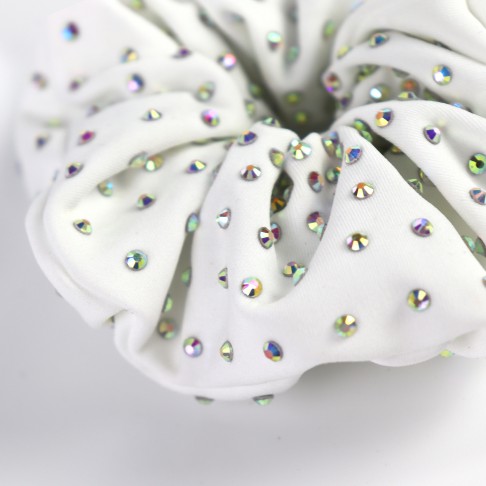 このスリップヘアスクランチは全体的な印象が強いです。表面にはラインストーンが施されています。チアリーディングのユニフォームと一緒に使用すると、ステージで輝くことでしょう。